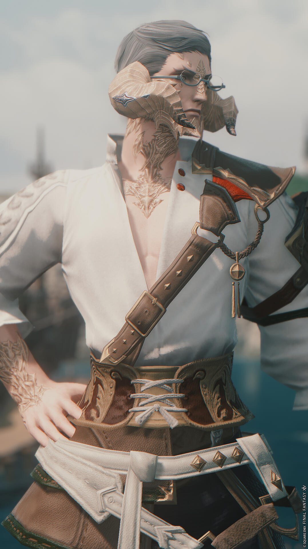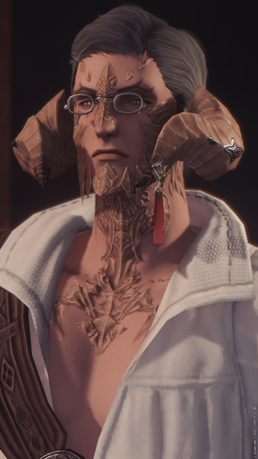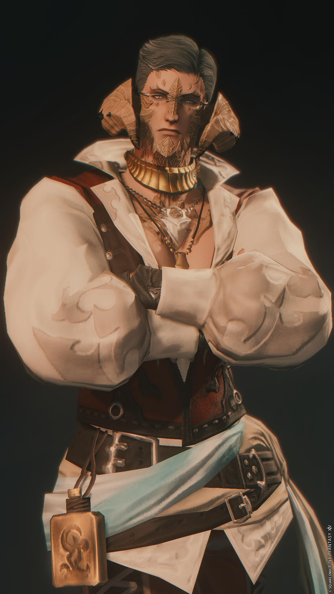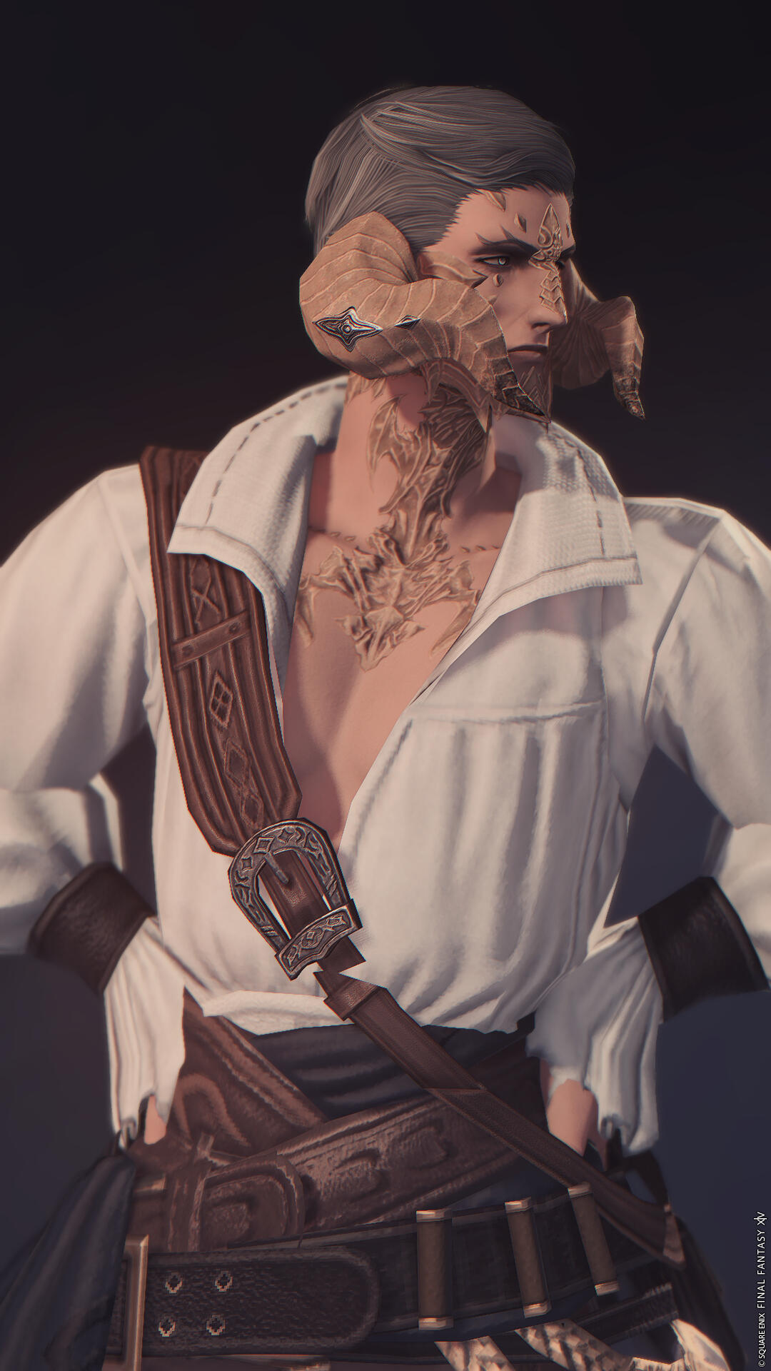 Tucked away in one of Limsa Lominsa’s many twisting spires and alleyways, Flashing Hawk Antiques boasts a modest interior filled with mundane relics from a bygone age. Beyond the counter roosts the proprietor, his snowy gaze keeping a watchful eye on customers behind a finely tuned, blank expression.It’s the closest he comes to a “customer service smile.”Outside the shop, Taka would rather be left well alone. He has no patience for tomfoolery and will not tolerate those who bother him unnecessarily. Let the old man drink himself to a slow death in peace.Though, there are some who may see him in a slightly different light. Those in need of help will find a firm hand on their shoulder, a coin in their cup, a meal in their bowl. It’s anyone’s guess as to how he has money left to his name at the end of the day.Press your luck with him, however, and you’ll certainly wish you didn’t; this old soldier has a mean streak and a broken off-switch.
