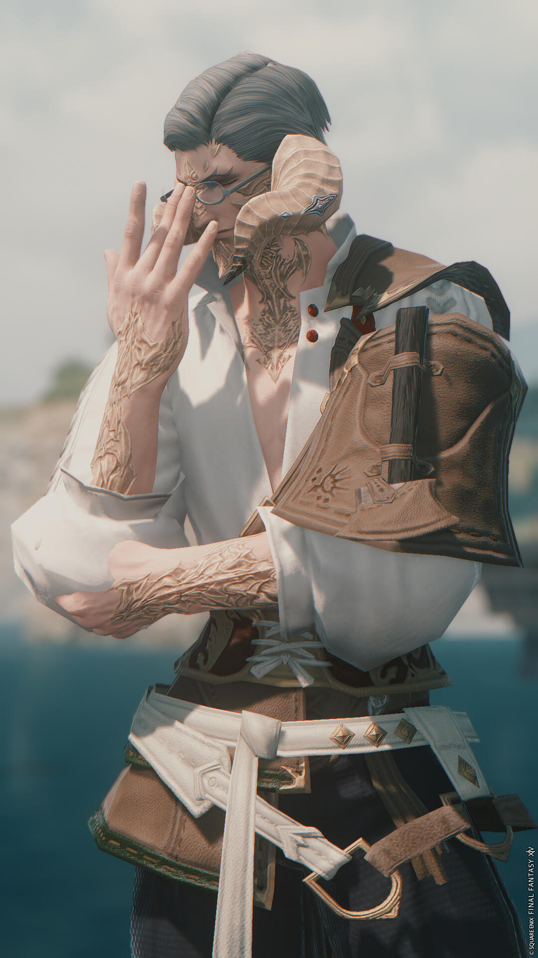Do you recognize something in the way he carries himself, as if a uniform would fit him effortlessly? Do you have memories of Doma, on either side of the occupation? Fellow Domans may catch a wary wistfulness to his words, a regret he can’t quite put in the ground. Those of Bozjan descent, however, will find him even more guarded than usual in their presence, if he deigns to stick around for long.Garleans he’d rather not speak to at all.SOMETHING BLUE